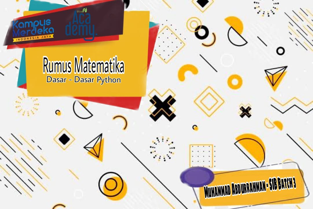 Python adalah bahasa pemrograman tingkat tinggi yang tidak menggunakan compiler dan bersifat open source. Python juga merupakan bahasa pemrograman komputer yang sering digunakan untuk membangun situs web, perangkat lunak, mengotomatiskan tugas, dan melakukan analisis data. Portofolio ini berisikan project Implementasikan Bahasa Pemrograman Python pada course Dasar - dasar python. Pada portofolio penjelasan mengenai pembuatan program Rumus Matematika yang berisikan hitung kecepatan, luas segitiga, luas balok, dan luas bola.