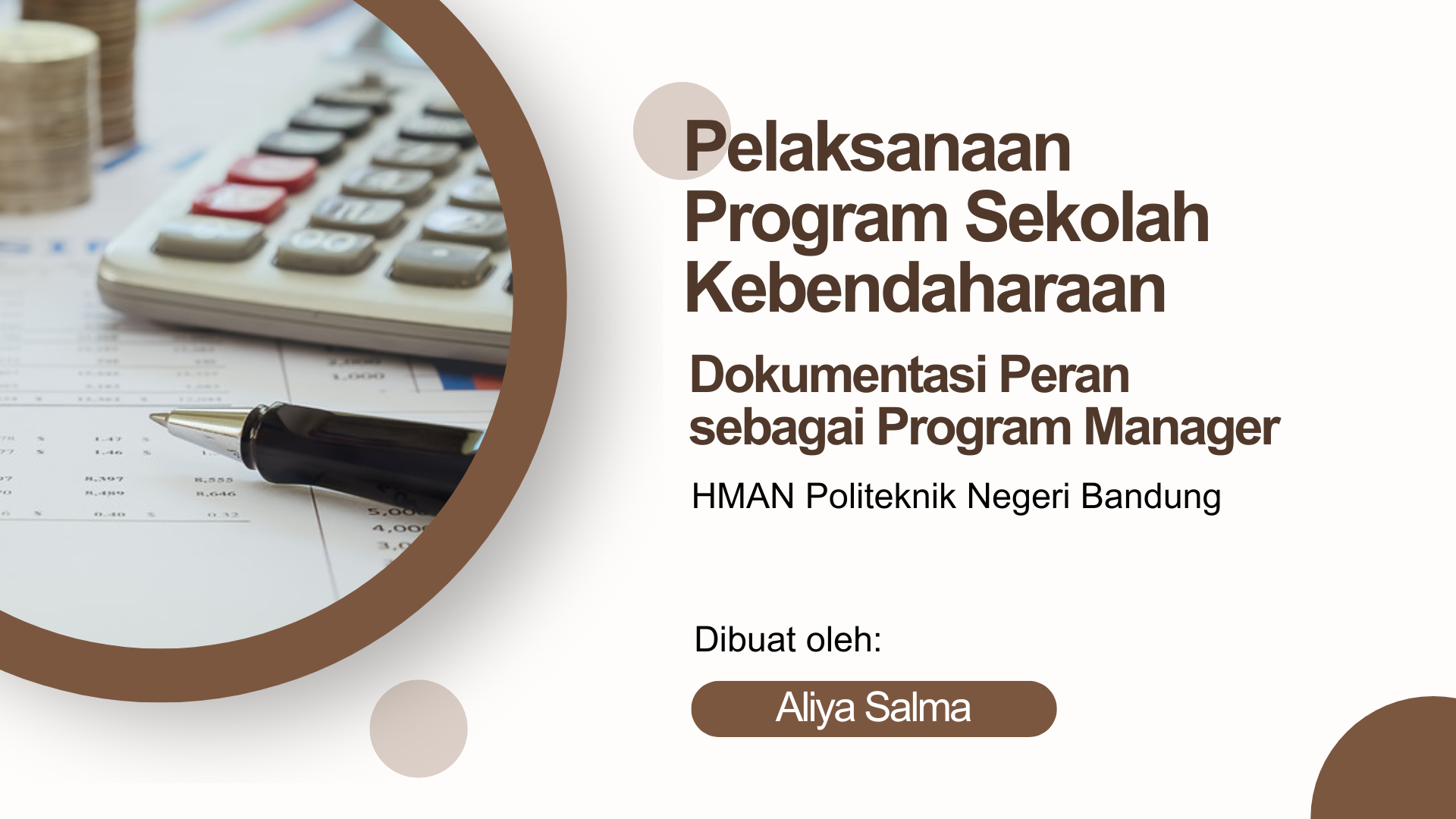 Portofolio ini menggambarkan peran saya sebagai seorang Program Manager dalam pelaksanaan Program Sekolah Kebendaharaan yang diselenggarakan oleh Himpunan Mahasiswa Administrasi Niaga (HMAN) Politeknik Negeri Bandung. Program ini diikuti oleh para staf muda Biro Keuangan (Birok) dan bertujuan memberikan pemahaman teknis mengenai penyusunan Rencana Anggaran Biaya (RAB) serta Surat Pertanggungjawaban (SPJ) yang diperlukan dalam setiap program kerja HMAN. Tanggung jawab saya mencakup penyusunan dokumen kegiatan, koordinasi melalui email, pengelolaan data, pembuatan materi presentasi, penyusunan rencana pertemuan, manajemen notulen, penyusunan laporan kebutuhan informasi, hingga melakukan komunikasi efektif dengan pemangku kepentingan. Portofolio ini menggambarkan rangkaian tugas yang saya jalankan untuk memastikan program berjalan terarah, profesional, dan sesuai standar organisasi.