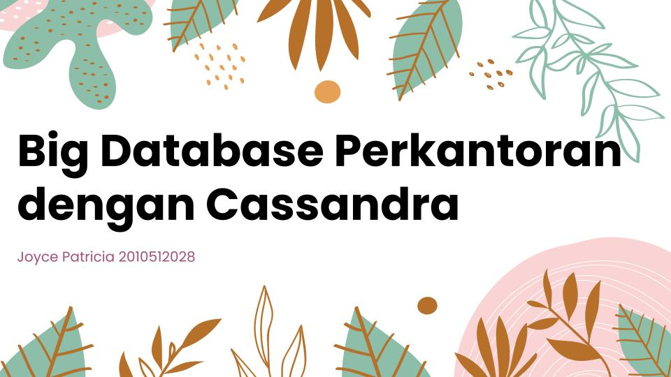 Dilakukan pembuatan Big Database Perkantoran dengan Cassandra. Database Perkantoran ini memiliki 5 buah table yaitu table direktur, table manager, table karyawan, table jadwal meeting, dan table modul. Pembuatan database sangat memudahkan perusahaan dalam menyimpan semua data yang ada.
